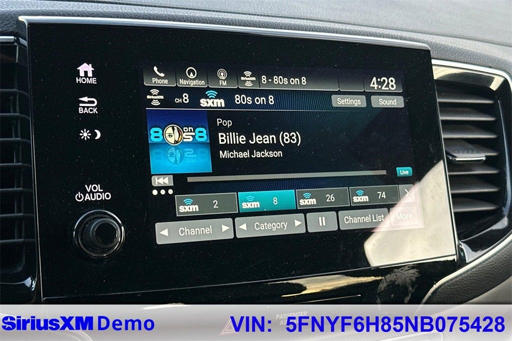 - Radio: 215-Watt Audio System -inc: 7 speakers, subwoofer, Bluetooth® HandsFreeLink and streaming audio, MP3/auxiliary input jack, Radio Data System (RDS), Speed-sensitive Volume Compensation (SVC), 2.5-amp USB charging port (1 port in center console/2 ports on 2nd-row), 8" display audio w/high-resolution touch-screen and customizable feature settings, HondaLink, CabinControl remote compatibility, Apple CarPlay integration, Android Auto integration, SMS text message function, SiriusXM (SiriusXM requires a subscription after any trial period, If you decide to continue your SiriusXM service at the end of your trial subscription, the plan you choose will automatically renew and bill at then-current rates until you call SiriusXM at 1-866-635-2349 to cancel, See our customer agreement for complete terms at www.siriusxm.com, Fees and programming subject to change, Available in the 48 contiguous United States and D.C, SiriusXM and all related marks and logos are trademarks of SiriusXM Radio Inc.), HD radio, 2.5-amp USB smartphone/audio interface (1 port in front console), wireless phone charger and Honda Satellite-Linked Navigation System w/voice recognition and Honda HD digital traffic