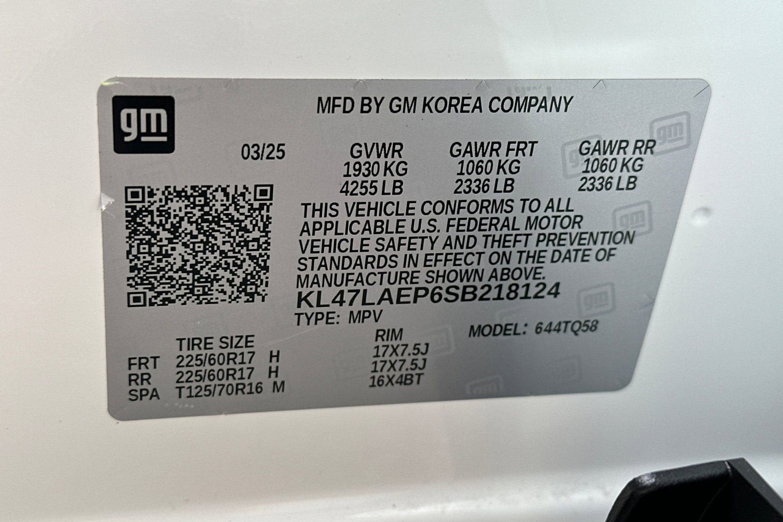 - GVWR, 4255 lbs. (1930 kg)