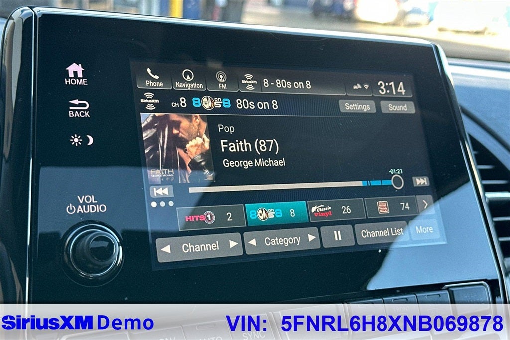 - Radio: 160-Watt AM/FM/HD/SiriusXM Audio System -inc: 7 speakers including subwoofer, Speed-Sensitive Volume Compensation (SVC), Honda Satellite-Linked Navigation System w/voice recognition (functions in the United States (not including territories, except Puerto Rico) and Canada), Honda HD digital traffic (service is only available in the United States, except Alaska), Bluetooth® HandsFreeLink, Bluetooth® streaming audio, MP3/auxiliary input jack, Radio Data System (RDS), SMS text message function, 2.5-amp USB audio interface port in center console, 2.5-amp USB charging port in front console, (2) 2.5-amp USB charging ports in second row, 2.5-amp USB charging ports in third row, CabinControl remote compatibility, 8" display audio w/high-resolution electrostatic touch-screen and customizable feature settings, Apple CarPlay, Android Auto, CabinTalk in-car PA system, HDMI interface, HondaLink, mobile hotspot capability, illuminated steering wheel-mounted audio and navigation controls and body-colored fin-type roof-mounted antenna, All SiriusXM services require a subscription, sold separately by SiriusXM after the trial period, If you decide to continue service, the plan you choose will automatically renew at the then-current rates, Fees and taxes apply, See the SiriusXM Customer Agreement & Privacy Policy at www.siriusxm.com for full terms and how to cancel, which includes calling 1-866-635-2349, Available in the 48 contiguous U.S, and D.C, Some services and features are subject to device capabilities and location restrictions, All fees, content and features are subject to change, SiriusXM, Pandora and all related logos are trademarks of Sirius XM Radio Inc, and its respective subsidiaries